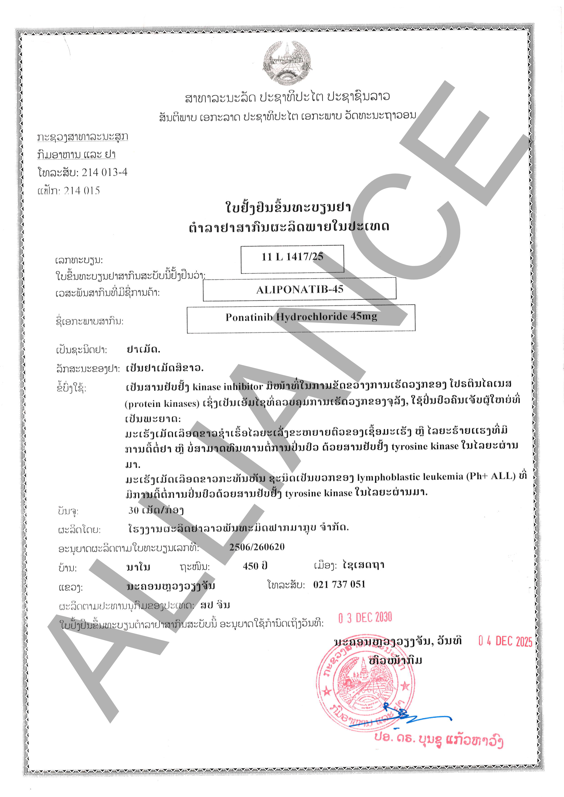 | 品名 | 盐酸泊那替尼片45mg | ||