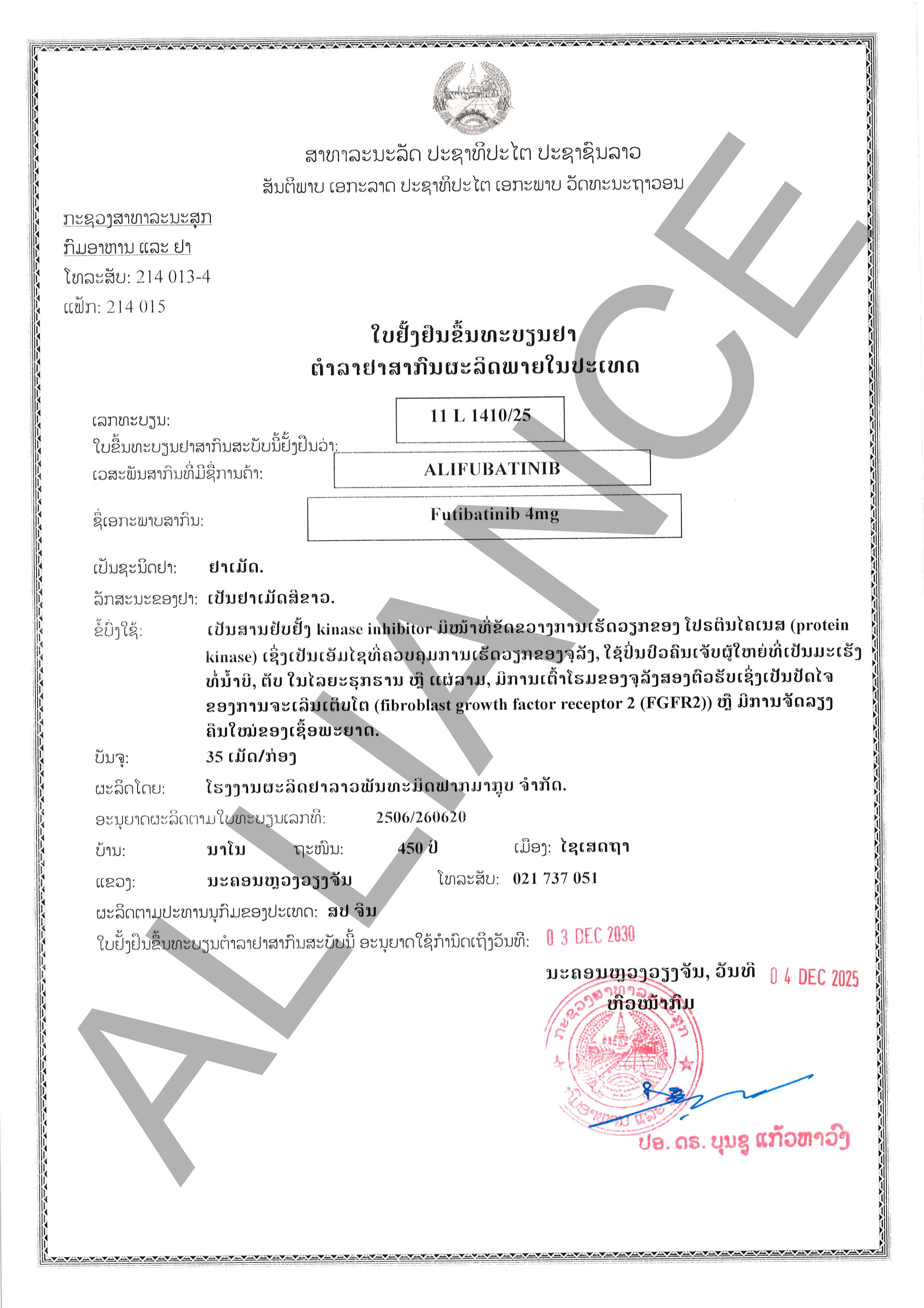 | 批文 | 11L1410/25 | ||