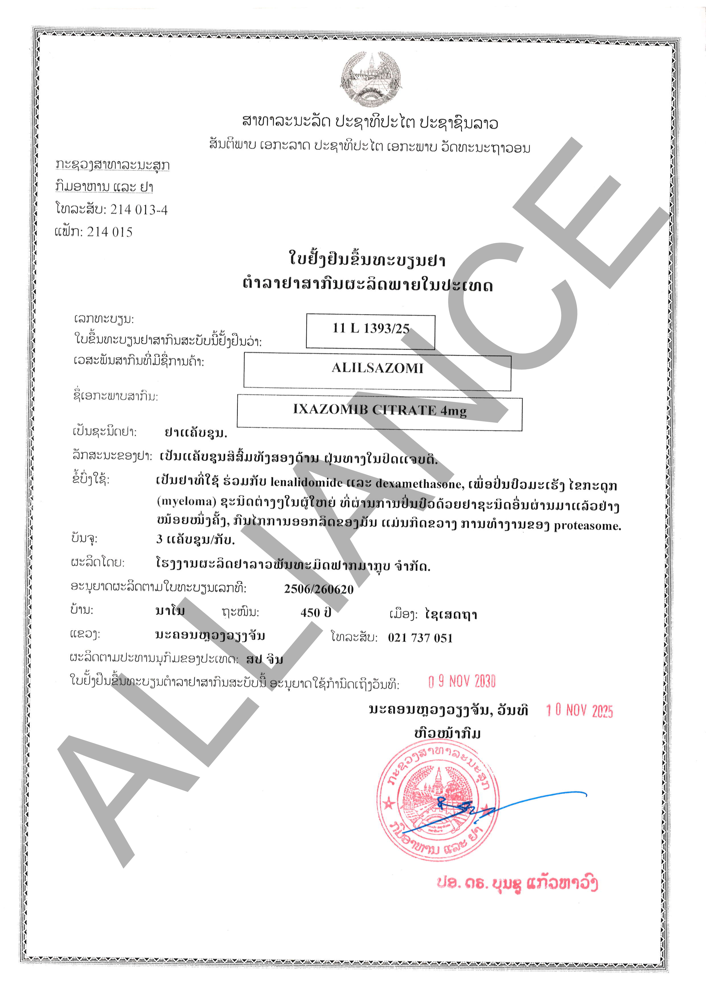 | 批文 | 11L1393/25 | ||